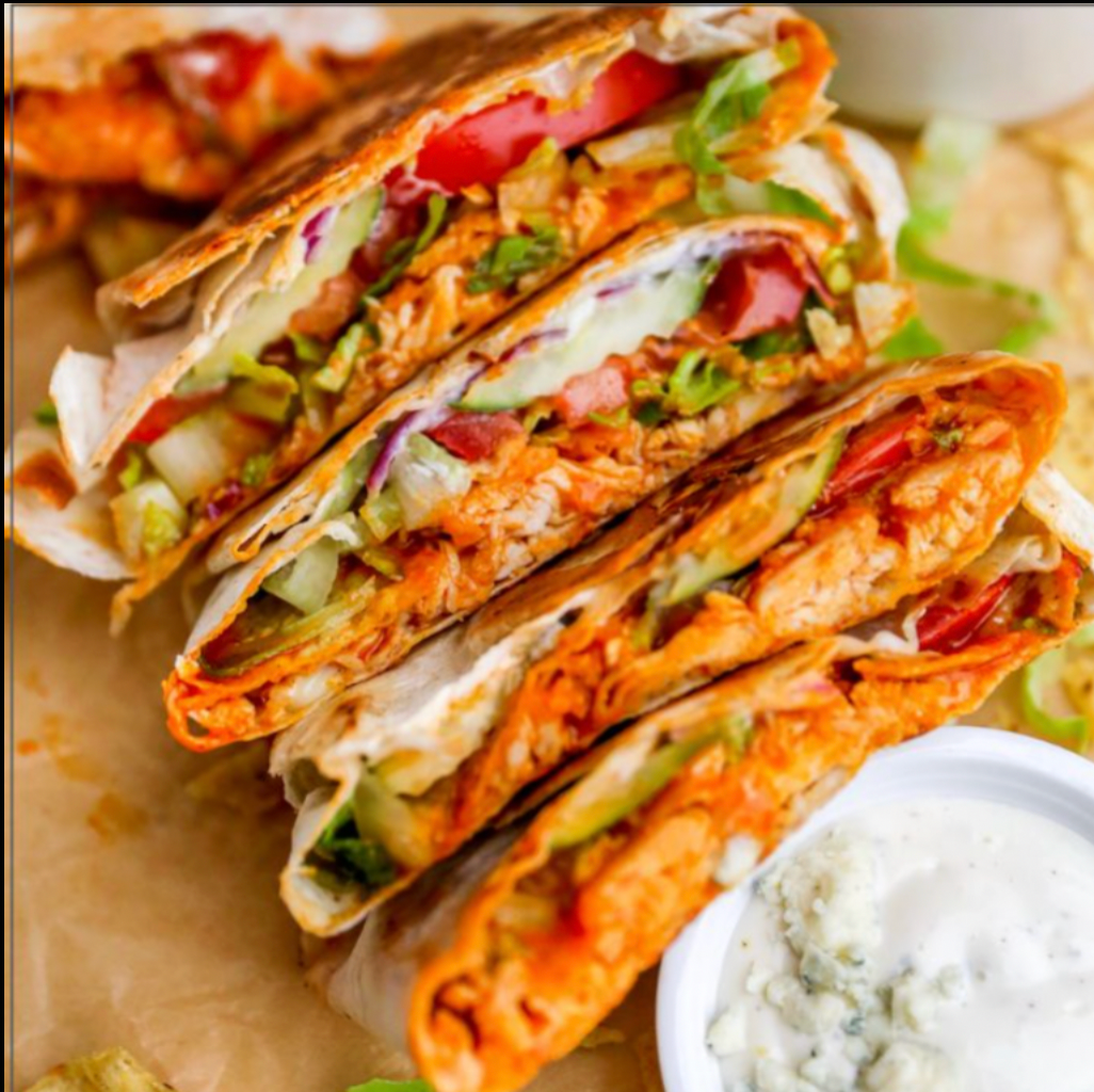 Organic, non-GMO soy. Choose Mexican beef or Buffalo chicken, with lettuce, tomato, and nacho cheese/ranch.